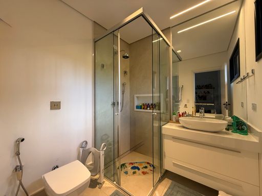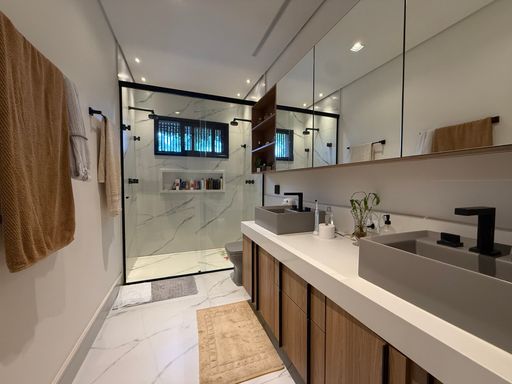 ▫️ 04 suítes com closet e armários planejados, sendo a suíte master com cuba dupla, ducha dupla e ar-condicionado